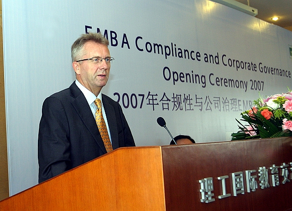 将协助领导本项目的德国Constance应用技术大学教授Josef Wieland表示,全球化的公司和教育需要规范企业和经理人员行为的全球标准,公司治理及合规EMBA项目将有利于这方面的发展。学生代表Fred Loh也发表了讲话。