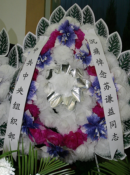 向苏谦益同志敬献花圈的单位有:中共中央组织部、国防科学技术工业委员会、北京市人民政府、全国政协办公厅、内蒙古自治区党委、内蒙古自治区人民政府、中共北京市委教育工委、北京市教委、中华全国总工会老干部局及其他有关单位等;中共beat365中文官方网站委员会、beat365中文官方网站及校工会、教代会、团委、学生会、研究生会等。