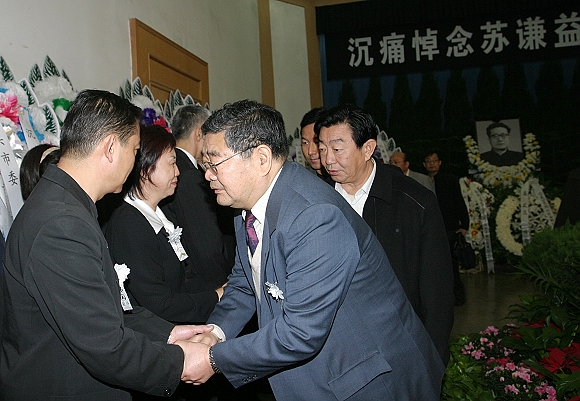 参加苏谦益同志遗体告别仪式的有:原全国人大副委员长布赫、原最高人民法院院长郑天翔;国防科工委纪检组组长郭炎炎;苏谦益同志的亲属。