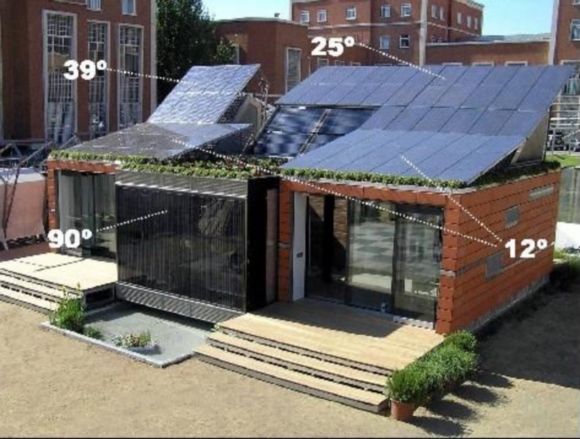 这所太阳能房屋系西班牙马德里理工大学参加我国建设部举办的“未来之屋”展览的展品。它的安装占地面积约为90平米,使用面积70平米,全部占地面积(连前后花园)约150-180平米。该太阳能屋采用光电系统为屋内电器设备提供电源(包括一辆电动汽车)。每日约供电20千瓦时(其中13.3千瓦时用于屋内设备,7.2千瓦时用于电动汽车)。光电系统主要有3个优势: 1.能量输出效率较高,变流系统使每个光电板都可在最大功率点独立运转 。2.通过变流器,可使房子与电网相连接,此外,太阳能贮存的电池电量可作为备用系统。3.还可以与其他能源系统相连接,如风能发电。