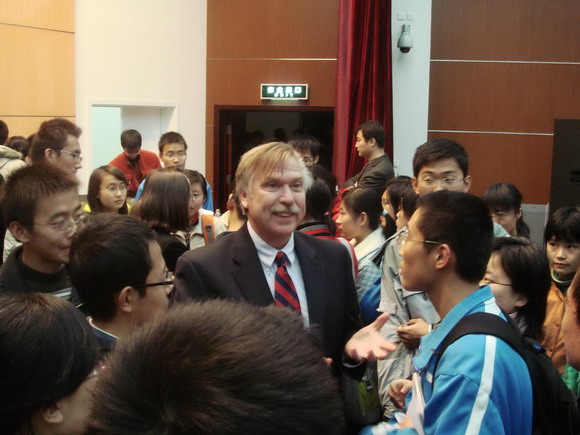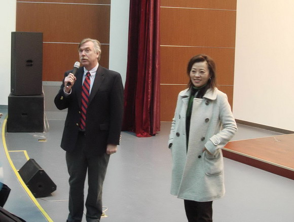 11月19日下午4点,美国马凯大学教务长Dr. Madeline Wake和商务管理学院金融系教授,应用投资管理项目主任Dr. David S. Krause和国际项目部主任Terence. W. Miller作为第四期“嘉言堂”主讲嘉宾在良乡校区报告厅为同学们介绍了马凯大学及美国高等教育的一些基本情况,beat365中文官方网站副校长李和章、国际交流合作处副处长汪滢、学生办公室副主任邹锐和300多名07级学生参加了报告会。
