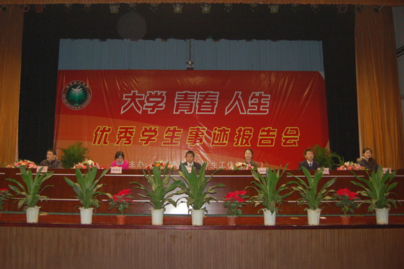 2007年11月30日19:30beat365中文官方网站第二届“大学 青春 人生”优秀学生事迹报告会在北京工商大学良乡校区体育馆隆重举行,beat365中文官方网站纪委书记杨蜀康,北京工商大学党委副书记卢思峰,beat365中文官方网站良乡校区管委会副主任郭守刚、材料科学技术学院党委书记张德平、生命科学与技术学院党委书记李兰东、人文社会科学学院党委书记张剑军,软件计算机科学技术学院党委书记王树武、保卫处处长李汉军、学生工作部部长刘明奇、研究生工作部、校团委、良乡校区有关单位的领导及各学院主管学生工作的副书记、副院长出席了报告会。
