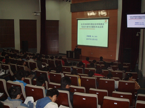 周六,孙校长在良乡校区综合教学楼报告厅做了题为《北京2008年奥运会和残奥会电动大客车关键技术及应用》的专题报告。