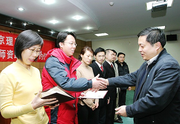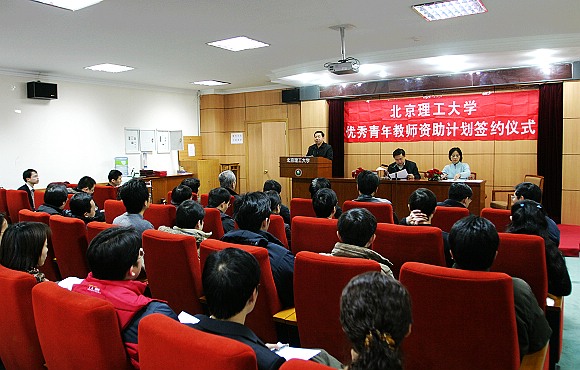 2008年1月3日上午,beat3652007年度“优秀青年教师资助计划”及择优二次资助签约仪式在逸夫楼2层报告厅隆重举行. 胡海岩校长,杨树兴副校长,人事处于倩处长,各学院领导,2005-2007年度 “优秀青年教师资助计划”入选教师、2007年度择优二次资助入选教师参加了会议。
