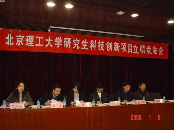 2008年1月8日下午,beat365中文官方网站研究生科技创新立项发布会在研究生楼101教室召开。研究生院副院长王渝,科技处副处长徐文国,信息科学技术学院副书记、副院长郝群,机械与车辆工程学院副书记、副院长郝洪涛,化工与环境学院副书记、副院长孟祥以及相关学院研究生辅导员、研究生代表参加大会。研究生工作部部长肖文英主持大会。