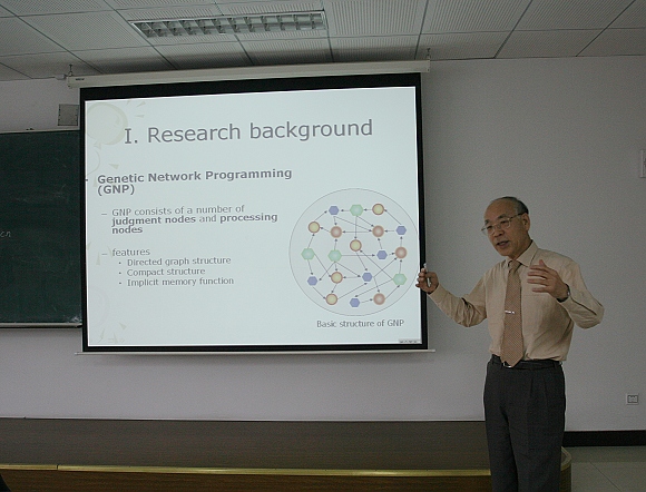 本次活动中,Hirasawa 教授做了题为:“Stock Trading Model Using Genetic Network Programming with Reinforcement Learning” 的学术报告。