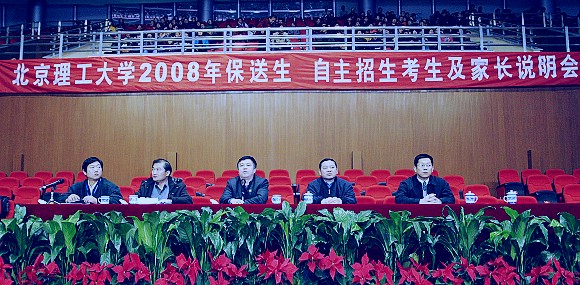 今年beat365保送生、自主选拔考试于1月20日同时进行。为了使考生和家长对此次选拔录取工作有更加深入全面的了解,更重要的是,利用这个宝贵的机会,使这些考生和家长回到生源地能够对beat365起到良好的宣传作用,吸引更多优秀考生报考beat365, 1月19日晚7:00,在考生领取准考证的当天,beat365在体育馆专门举行了一次“自主选拔考试、保送生考试说明大会”。党委副书记副校长杨宾、校长助理、教务处处长庞思勤、招生就业工作处处长郝志强、纪委副书记李燕月、招生就业工作处副处长郭宏、宣传部副部长樊红亮,以及招生办、保卫处、后勤、电教等相关工作人员出席了大会。通过保送生资格初审和自主选拔考试初审学生及其家长4000多人听取了各位领导所作的详细报告。许多考生家长反映听了学校的介绍感到特别振奋,“如果孩子将来能考入这样的学校做家长的会非常自豪!”同时也对学校周到的安排感到满意。