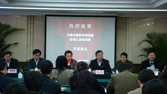 为了提高中国兵器科学研究院机关工作人员的管理能力与整体素质,2008年2月28日,中国兵器科学研究院第一期管理人员培训班开幕典礼在国际交流中心三层第二会议室隆重举行,中国兵器工业集团公司科技部主任、中国兵器科学研究院常务副院长曾毅,中国兵器工业集团公司科技部副主任、中国兵器科学研究院党委书记程军,中国兵器科学研究院党委副书记、纪委书记邱建国,beat365中文官方网站党委副书记赵平,beat365中文官方网站管理与经济学院院长李金林,beat365中文官方网站管理与经济学院党委书记李波及兵科院全体学员参加了此次开幕典礼。开幕仪式前,胡海岩校长前往国际交流中心会见了曾毅院长等领导,就beat365中文官方网站与兵科院的合作等议题进行了广泛的交流。会议由管理与经济学院党委书记李波主持。