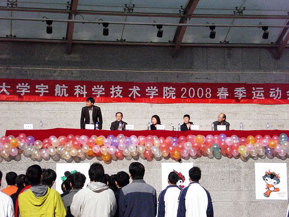 北京的三月,阳光灿烂,春意盎然!3月30日清晨,学校东操场朝阳满洒,旌旗舒展,宇航科学技术学院2008年春季运动会隆重举行。学院刘淑艳书记、华光副院长、唐胜景副院长、王宁飞副院长、董兆波副院长,各系负责老师、各年级辅导员和各班班主任出席了开幕式,开幕式由学院分团委书记方蕾主持。
