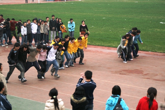 需要指出的是,本次运动会在学院的支持下,特意派出专车将良乡校区我院07级新生接回校本部,与全院师生一起,共同参与,同场竞技。另外本次运动会还新设立了旨在增进师生交流的师生共同参与项目,其中的师生拔河友谊赛更是把运动会推向了高潮。下午5点,伴着集体大绳项目的结束,运动会举行闭幕式,颁发了团体奖项和精神文明奖。