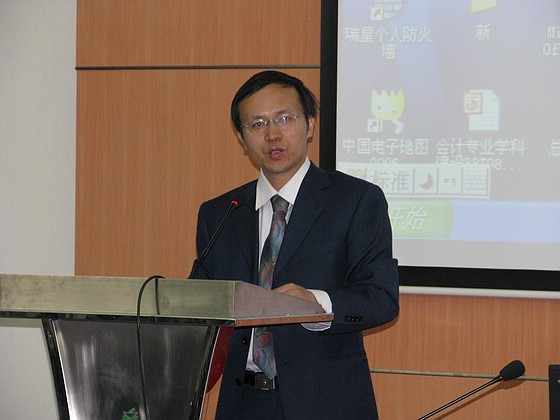 孟凡臣教授就如何搞好“双语教学”,做了“加强教育国际化,应对全球化发展的挑战”的专题发言。