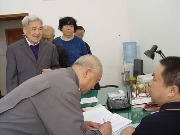 在老干部处综合科,一早就排起了长队,向灾区捐款。老干部们有秩序地捐款,向灾区人民传递了一份温暖,他们希望灾区人民能早日脱离灾难,重建家园。