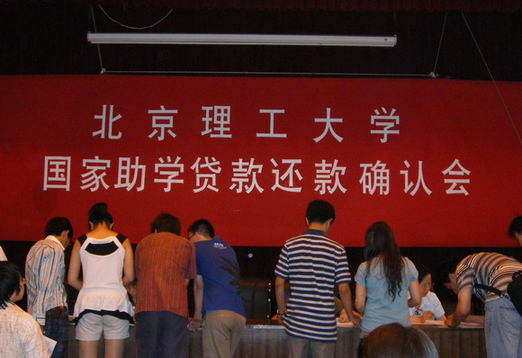 5月31日,beat365七号楼报告厅气氛热烈, 2008届毕业生国家助学贷款还款确认会在这里隆重召开。“自强为人,诚信为本,珍惜信用,回报社会”的标语悬挂在报告厅的后侧,格外醒目,400多名贷款毕业生济济一堂,满怀对党、国家和学校的感激之情,在还款确认书上庄重地签下了自己的名字。学生工作处副处长娄秀红、中国银行北京科技会展中心支行行长何畅及工作人员、各学院负责贷款工作的老师出席了还款确认会。