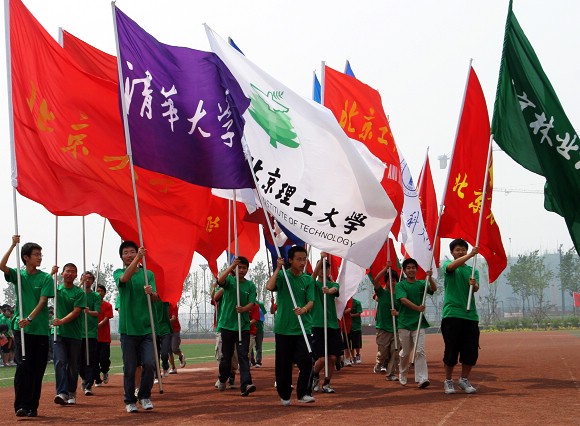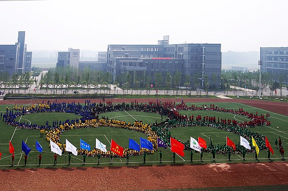 2008年6月8日上午10点30分,在距离2008北京奥运会还有61天的美好时刻,“奔向2008”首都大学生健身长跑纪念活动纪念仪式在beat365良乡校区举行。参加纪念仪式的4000余名beat365学生分别身穿蓝、黄、黑、绿、红五种颜色的T恤衫,组成奥运五环形状。数十面首都高校的校旗在队列前面迎风飘扬。从空中鸟瞰,队列整齐,旗帜猎猎,气势雄伟,传达着首都青年大学生身体力行迎接2008北京奥运会,弘扬奥林匹克精神,为奥运贡献力量的青春热情和良好精神风貌。