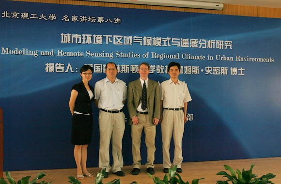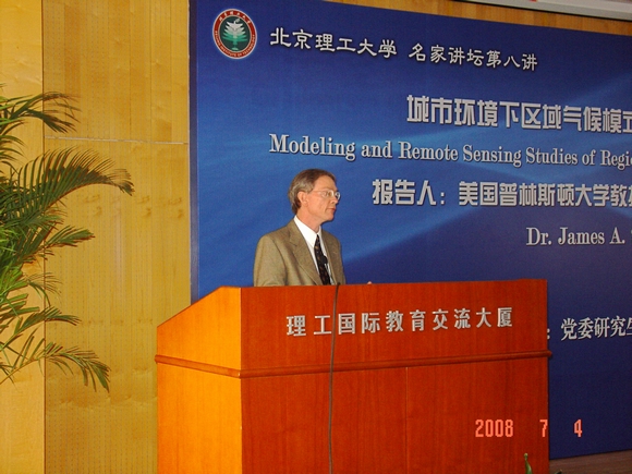 7月4日上午,美国普林斯顿大学教授J·A·Smith来到beat365作了题为Modeling and Remote Sensing Studies of Regional Climate in Urban Environments(城市环境下区域气候模式与遥感分析研究)的学术报告。詹姆斯·史密斯,美国普林斯顿大学土木与环境工程学院教授,美国国家自然科学基金会环境与健康工程中心副主任,美国气象学会委员,美国地球物理学会委员。同时担任美国气象学会水文气象期刊编辑。国际交流合作处处长王庆林、研工部副部长魏名山、beat365校友普林斯顿大学博士生张妍同学和beat365环境工程专业的研究生以及部分老师参加了这次学术报告会。