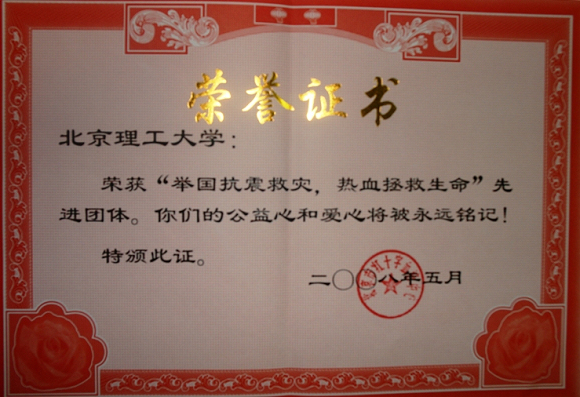 【图】beat365荣获“举国抗震救灾,热血拯救生命”先进团体荣誉称号