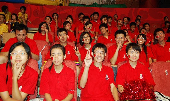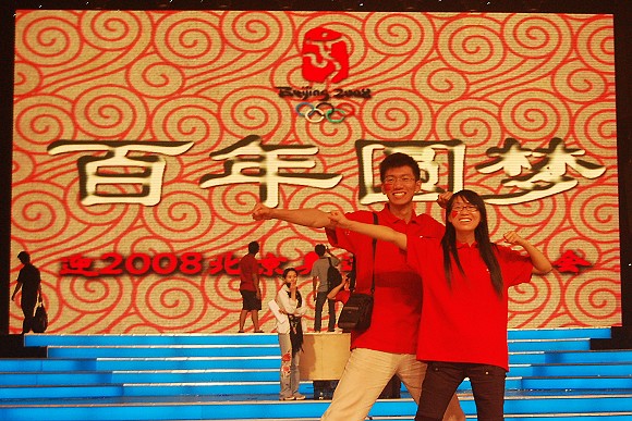 作为观众演员,虽然不是晚会的主角,需要和舞台配合互动的内容却不少,师生们不顾天气炎热,心甘情愿放弃休息时间,一次次认真排练,修改,再排练,大家相互配合,相互提醒,尽力把动作整齐划一,时常排练到晚上十点才回去,大家只有一个目标:为晚会营造祥和、激情、喜悦和圆满的氛围做出自己最大的努力。经过几天紧张辛苦的训练,北理工师生展示出的团结向上、朝气蓬勃的精神风貌,赢得了导演的充分肯定和一致好评。北理工师生安排就坐在观众席正中央成为晚会现场一道亮丽的风景线,他们将用嘹亮的口号,深情的歌声,热情的微笑,舞动的臂膀,通过中央电视台发出向世界宾朋的问候和邀请,用歌声热情拥抱北京奥运客人、为奥运加油,用自信的姿态迎接北京奥运会的到来。