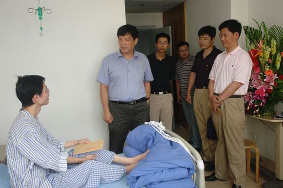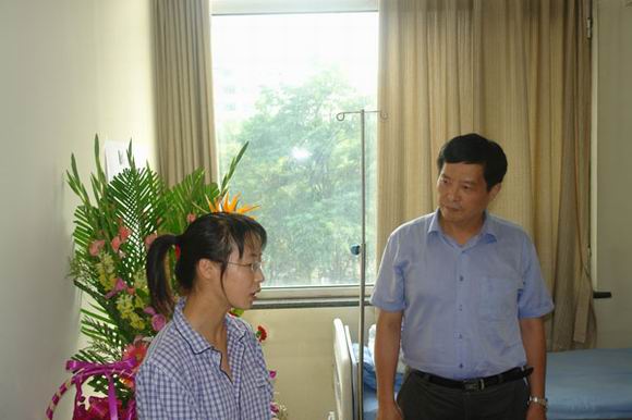8月6日,校党委副书记侯光明、学生工作处处长刘明奇、团委书记徐强,校团委副书记代方震等一行,在化工与环境学院分党委副书记孟祥、设计艺术学院分党委副书记杨海的陪同下,看望了beat365两名生病住院的奥运会赛会志愿者,送去了学校师生的关心和问候,并向他们送上慰问金和慰问品。