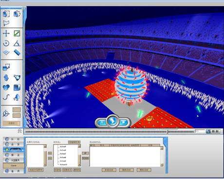 从2005年9月至2007年7月,beat365中文官方网站软件学院“数字表演仿真技术”的研发团队的“计算机三维智能仿真编排系统”就已在很多大型演出活动中应用过,但针对2008奥运开闭幕演出的具体导演需求,原型系统功能的覆盖率只有30%。
