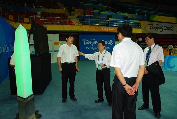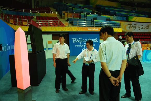 同时,该设备结合本届奥运、残奥的文化特色,在底座设计了海天融合和祥云图案,象征海内外追求和谐;整体设计成中华宝剑的形象,象征着奥运比赛的公平竞争;充分体现了奥运文化与传统文化的结合。