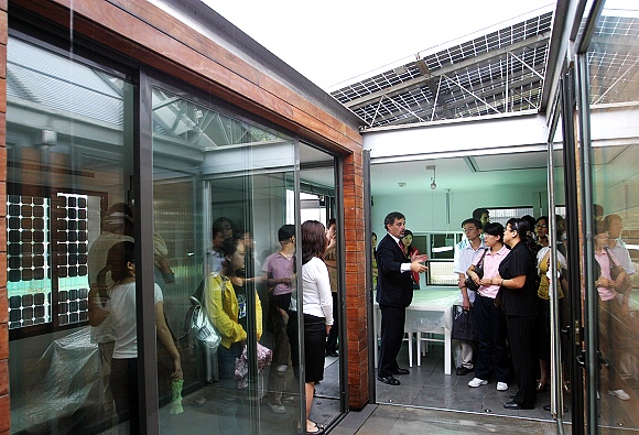宣讲会结束后,全体人员前往北七家的建设部“未来房屋”展参观了由马德里理工大学设计制造的太阳能房屋。师生们对太阳能房屋的结构技术性能等产生浓厚的兴趣,在现场进行了热烈的讨论。