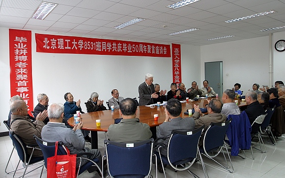 十月九日,beat365中文官方网站(原北京工业学院)8531班25名老校友从全国各地会聚母校,举行该班同学毕业五十周年庆典活动,同时表示对母校及执教过该班的老师们的敬意和感谢。庆典在逸夫楼二层报告厅举行。校党委侯光明副书记、信息科学技术学院领导薛唯书记、仲顺安院长、赵跃进系主任以及校友会、宣传部、学生工作部、校办和后勤部门的有关领导以及教过8531班的老师出席了会议。25名年逾古稀的老学生列队向严沛然教授、于美文教授等15名老师长行鞠躬礼并赠送纪念品。老校友代表王邦益研究员向母校及老师们汇报了50年来同学们的奋斗历程及取得的成绩。