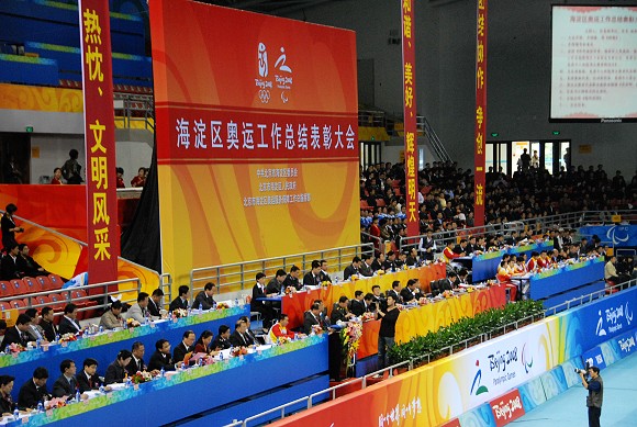 10月10日下午,北京市海淀区奥运会残奥会工作总结表彰大会在中国农业大学体育馆隆重举行。