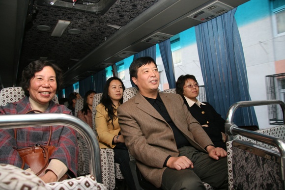 28日上午7时参加比赛的人员在远志楼门口登上了开往良乡校区的大巴车。校党委副书记、校工会主席侯光明在远志楼门前看望了参赛教师和评审专家,希望参赛青年教师在比赛中充分展示自己的教学风格和水平,并预祝选手们取得优秀的成绩、预祝大赛圆满成功。