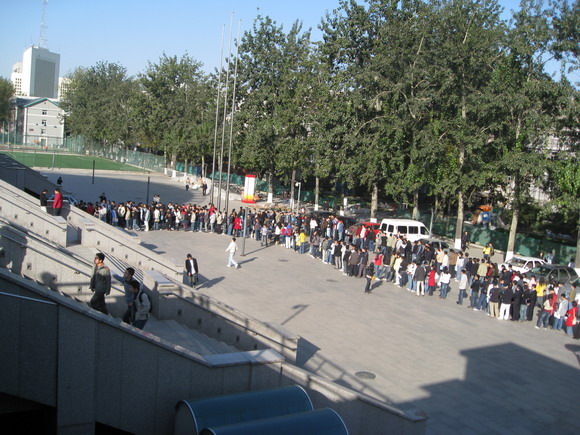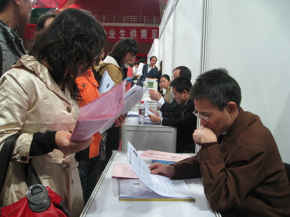 在各学院及保卫处、后勤集团等相关部门的大力配合下,在招生就业处的积极组织和妥善安排下,招聘会现场井然有序。招聘会定于上午9时开始,但从7点起,热情的同学们就陆续来到体育馆门前,在保安人员的引导下,自觉排队等候。招聘会正式开始时,同学们的两列纵队已经长达几百米,排到了远志楼附近。