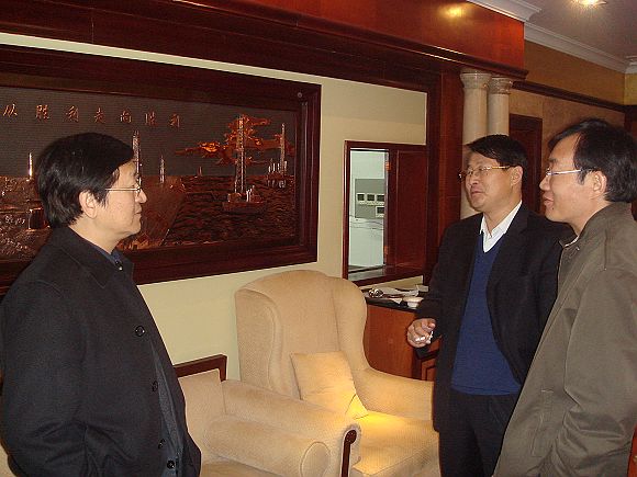 管理与经济学院党委书记李波和胜利油田领导交谈