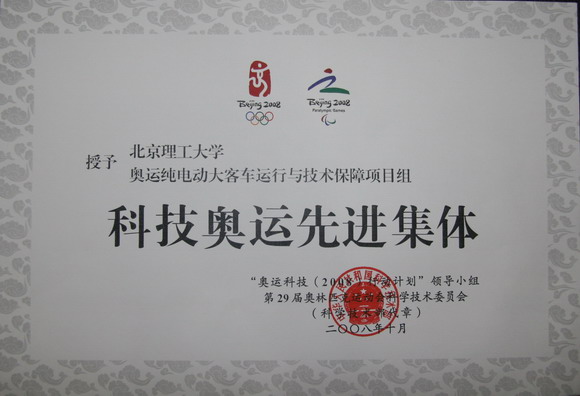 在北京奥运会、残奥会期间,由该团队主持研发的50辆“零排放”纯电动公交车24小时不间断地穿梭在奥运村、媒体村等核心区域内,为运动员、记者、观众等提供了舒服可靠的交通服务,创造了运行零故障的骄人记录,为实现“科技奥运、绿色奥运”做出了重要贡献。
