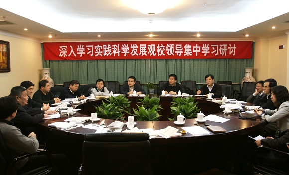 学校党委按照学习实践科学发展观活动 “聚焦特色谋发展,激情进取创一流” 的实践载体,以及在学习实践科学发展观活动中重点要解决的六个方面的问题,结合学校科学发展的实际,经过常委会集中研究确定了9个调研题目,并对具体调研时间、调研地点、负责领导、调研内容、调研方式、调研范围、协助部门等进行了具体安排。3月底以来,校级领导班子成员利用休息日集中开展了读书学习活动,认真研读了中央指定的书目和学校编发的辅导材料,观看了中央党校专家的理论辅导报告,并结合分管工作,按照自己负责的调研题目,组队领题开展了调研。