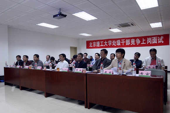 2009年4月13日,在研究生楼一层110会议室,beat365进行了科学技术研究院7个正副处级干部竞争上岗面试。经过资格审查,来自学院一线的教师,管理干部共19人参加了面试。 由校纪委书记杨蜀康任组长,副校长赵长禄、杨树兴任副组长,学院院长(书记)、“长江学者奖励计划”特聘教授、国家杰出青年科学基金获得者、知名教授代表,以及组织部、纪委(监察室)负责人组成的面试工作组,对19名应聘人员进行了考评。