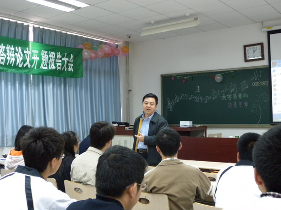2008级生物技术专业06120801班是党委副书记、副校长杨宾的联系班集体,在认真听取了同学们的开题陈述后,杨宾副书记进行了点评,他说,德育答辩开题活动给同学们提供了一个总结自己、规划未来的平台,希望大家通过现在的规划,对照着、有目标地走过大学四年。在谈到参加今天开题报告会后的感受时,杨宾副书记充分肯定了同学们规划大学生活的积极心态,利用开题报告会这个机会在全班同学面前把自己想说的表达出来,达到了很好的交流作用。大家要多为集体着想,共同营造积极向上的班风,同时培养自己的团队意识,为将来走上工作岗位打好基础。最后他勉励同学们要有自信、有志气,正确地评价自己,努力学习、认真做事;要有持之以恒的精神和对自己、对父母、对国家、对社会的责任感。