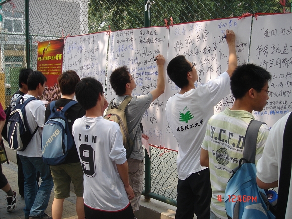 在感言中既有“弘扬五四精神,成就无悔青春!”般的豪言壮语,也有“让青春更精彩,让春天别走,我爱北理!”的情感流露,更有“回望九十年感慨非常,不知九十年后别人怎样回忆我们的青春?”的深沉思考。同学们分别用不同的语言、不同的情感表达着自己对那段如火岁月的纪念和思考。