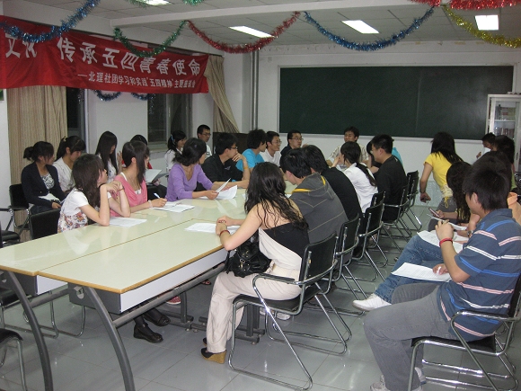 九十年前,高校学生街头游行,高喊爱国口号,无惧武力镇压;九十年后,青年一代缅怀先驱,传承五四精神,践行青春使命。在全国的青年组织或团体开展各式各样的纪念活动时,五月四日晚9:00beat365学生社团联合会也开展了以“胡锦涛主席在同中国农业大学师生代表座谈时的讲话”为主题的学习交流活动,以此重温“爱国、进步、民主、科学”的五四精神,激励全体社联人为将beat365建设成为具有高水平校园文化的高校而努力。参与本次学习活动的同学包括社联的主席团成员以及各部门负责人和骨干成员,与会成员踊跃发言,气氛热烈。