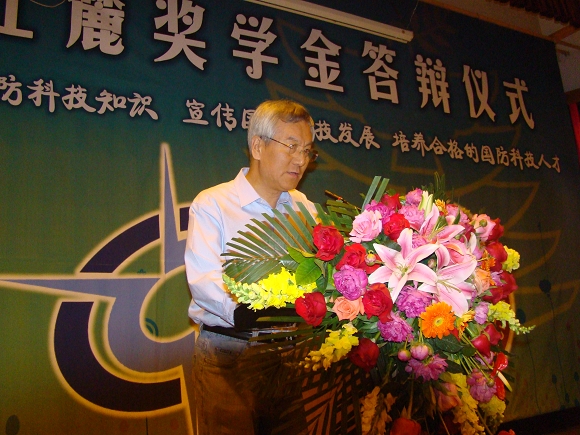 答辩正式开始前,机械与车辆学院分党委书记张英教授介绍了江麓奖学金设立的初衷、宗旨及本届奖学金评审前两轮的具体情况。激扬彭湃的讲话令在场的广大同学深感作为北理工学子肩上对国防科技的重任,并且让这个奖学金“普及国防科技知识,宣传国防科技发展,培养合格的国防科技人才”的宗旨更加深入人心。