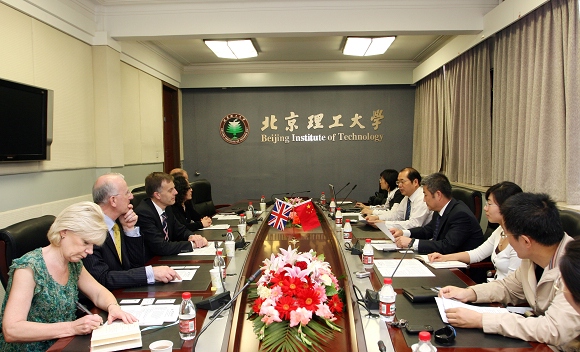 随后,赵长禄副校长与代表团一行在主楼二层会议室进行了正式会谈。国际交流合作处处长王庆林、信息与电子学院院长龙腾、化工与环境学院院长孙克宁、副院长冯金生、生命学院副院长李勤、国际交流合作处负责英国事务官员高珊等参加了会谈。双方就扩大两校合作范围、在信息、化工和生命科学方面加强人才培养、教师交流和科研合作等进行了深入的交流。
