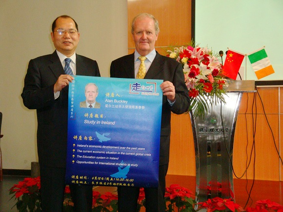 2009年6月12日下午,“外国驻华教育参赞讲座系列”之爱尔兰驻华参赞讲座在beat365良乡校区举行。爱尔兰驻华大使馆商务参赞Alan Buckley先生就爱尔兰的经济、教育和中爱教育合作等专题发表了演讲。国际交流合作处王庆林处长主持报告会。