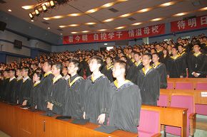 学院党委书记王军政教授在典礼上发表了热情洋溢的讲话,他首先代表学院向全体2009届毕业生表示热烈祝贺,充分肯定了广大同学在校期间追求真理、探求真知的求学历程。在广大毕业生走向社会、走向人生新的起点之际,他期望毕业生们能用更宽广的视野与胸怀看待事业与生活,为社会多做贡献,实现自己的人生价值。最后,王书记希望大家日后与学校保持联系,能常回家看看。