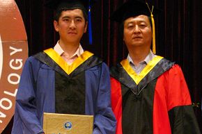 在廖晓钟副院长宣读《本科毕业生名单及授予学士学位的决定》和王军政书记宣读《研究生毕业生名单及授予硕士、博士学位的决定》后,授礼仪式再一次将典礼推向了高潮。学院党委书记王军政教授、院长付梦印教授、副院长廖晓钟教授、副院长张百海教授、学生工作负责人邹凌为毕业生授予学位,并与每一位毕业生合影留念。