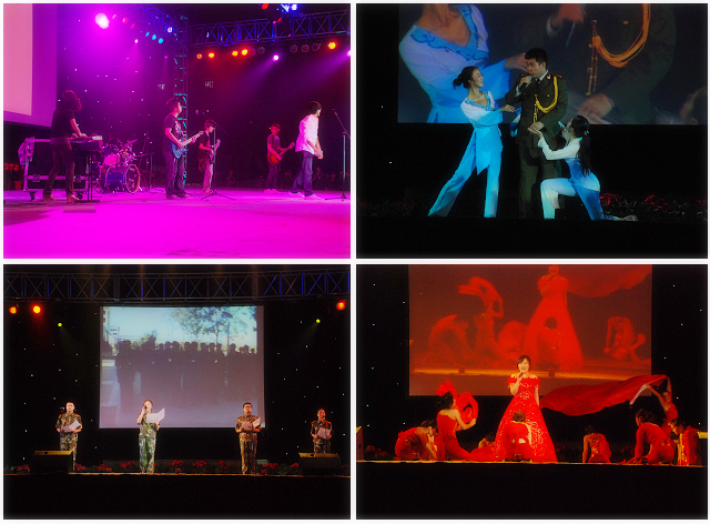 一曲激情奔放的《怒放的生命》拉开了晚会的序幕,现场气氛欢快而热烈。学员们竞相献艺,有歌颂老红军的《我爱五指山,我爱万泉河》、有表现中国人民英勇顽强、奋发向上精神的歌伴舞《红旗颂》,有用笑声演绎历史的舞台剧《逐日村反击战》,有声情并茂的诗朗诵《军训组歌》,也有令人对祖国的大好河山心生赞叹而《蓝色的蒙古高原》。