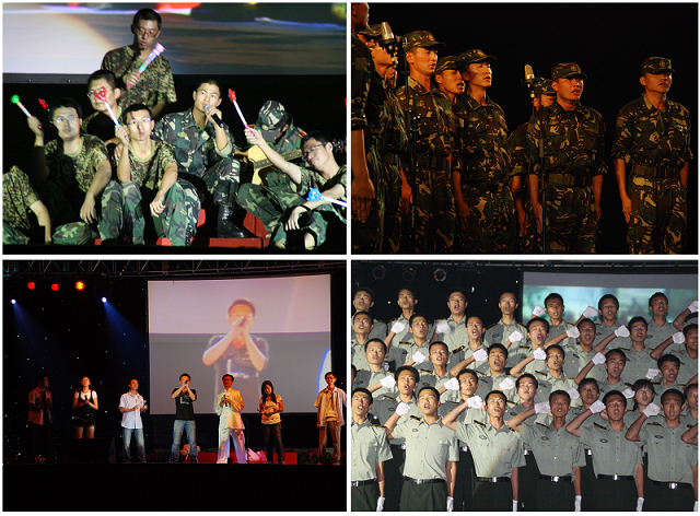 精彩绝伦的《歌曲串烧》与现代舞《Anyclub》体现出了90后大学生的青春活力;大合唱《beat365中文官方网站国防生核心价值观之歌》展现了北理国防生特有的气势与风采;司马教官的一首《军中绿花》唱出了军人内心的真情;由十几名教官们演唱的《当那一天真的来临》和指导员们倾情奉献的《歌曲联唱》向我们展现出教官与指导员们多才多艺、青春活泼的另一面,将本次晚会推向了高潮,全场掌声不断。