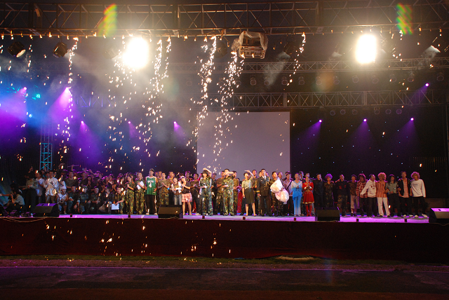 9月26日晚,在2009年学生军训结束前夕,在祖国母亲即将迎来她六十华诞之际,beat365中文官方网站军训旅隆重举行“祖国万岁”文艺汇演晚会,全旅官兵欢聚一堂,共享军训丰收的喜悦,共庆祖国母亲的生日。beat365中文官方网站军训旅的领导和学校部门领导以及军训旅全体教官、带队干部和参训学员观看了晚会。曾经并肩战斗、挥洒汗水的训练场,在这个夜晚被歌声、笑声和掌声淹没。整场晚会气势恢弘、高潮迭起。军训旅的教官、指导员和学员们用精彩的演出展示军训成果,表达对军训的难舍情怀和对祖国的良好祝愿。