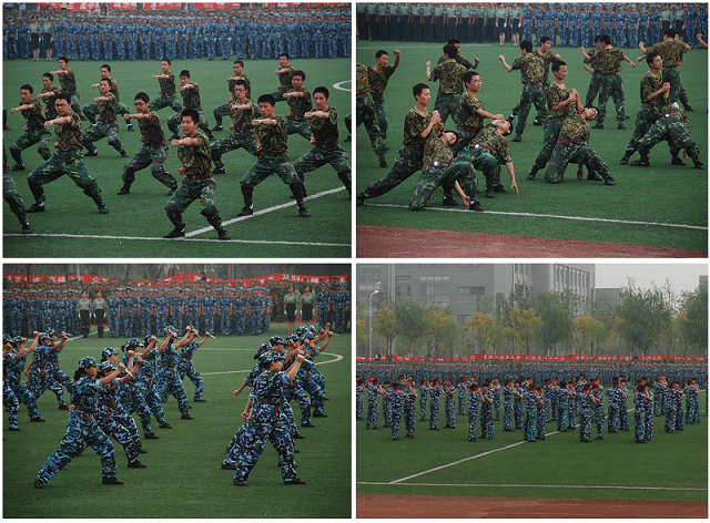 军事科目表演中,由军训旅六个营组成的六个表演方阵,分别进行了扑俘拳、震脚拳、扑俘刀、综合格斗术和一招制敌等科目的表演。各表演方阵整齐划一,出招迅速有力,动作标准到位,赢得了主席台领导的阵阵掌声。