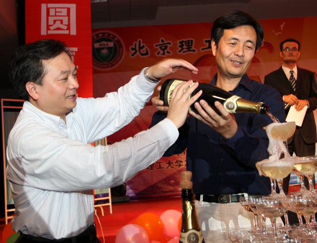 “又是一年好收成”香槟塔倒酒仪式将酒会的气氛推向了高潮,嘉宾们将象征着欢庆的美酒缓缓的倒入香槟塔中。李书记为所有与会嘉宾和同学致上祝酒辞,祝福09级MBA新生在beat365中文官方网站学有所成,为母校的美好明天贡献力量。