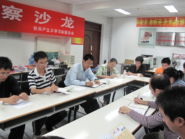 在校共产主义学习实践总会会长于满对本期话题简短介绍后,与会同学就这一主题展开了热烈讨论,所涉内容相当广泛。同学们慷慨激昂,踊跃发言,从东北亚朝核危机谈到台海和平、南海主权,从东西方不同的价值观谈到东西方政治、经济、文化方面不同的发展前景,从国内能源短缺、环境污染问题谈到建设和谐社会的艰巨性和长远性……与会同学或据理论争,或慷慨陈词,或引经据典,无不表现了各位同学对祖国未来六十年所面临机遇挑战的思考与探索。