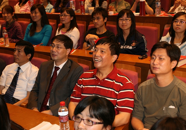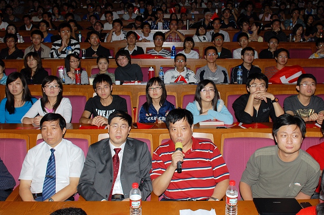2007级材料学院刘贺同学是beat365中文官方网站网络开拓者协会的一名学生干部,10月1日上午他一直在网上留言,一旦有人提及网络视频直播的信号不稳定,他就立即提供技术支持,为了这次直播他们做了最充分的准备,在他们的努力下,在相隔40公里的中关村校区和良乡校区,1000台电脑同时在线观看这次国庆盛典。