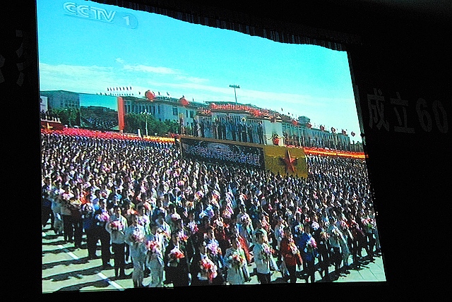 当群众游行画面中 “民主政治”方阵走主席台时,所有教室不约而同地响起了热烈的掌声。 大家纷纷为自己的老师同学的精彩表现而喝彩,为祖国民主政治的巨大成就而喝彩。