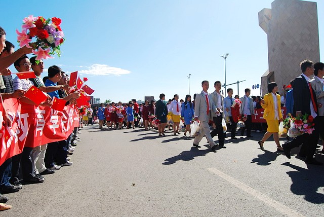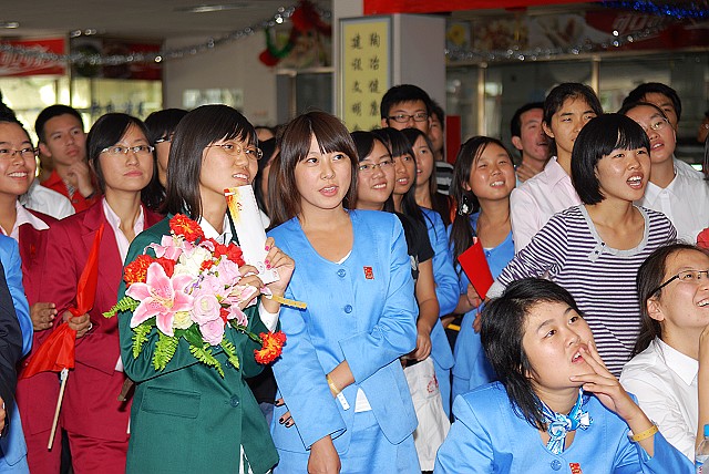 游行结束返回良乡校区后,二十二总队全体成员受到了校领导、相关部门及近千余2009级学生英雄般的欢迎。